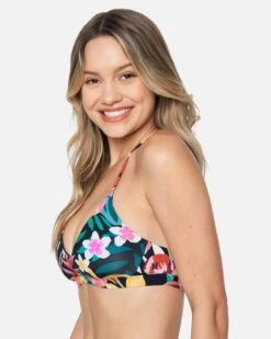 Chic, chic, chic! the BAHIA REVERSIBLE HIGH NECK TOP features a super fun jungle inspired print, adjustable ties at the neck, and is made with earth friendly materials. Added bonus: it’s reversible. You gotta love options.