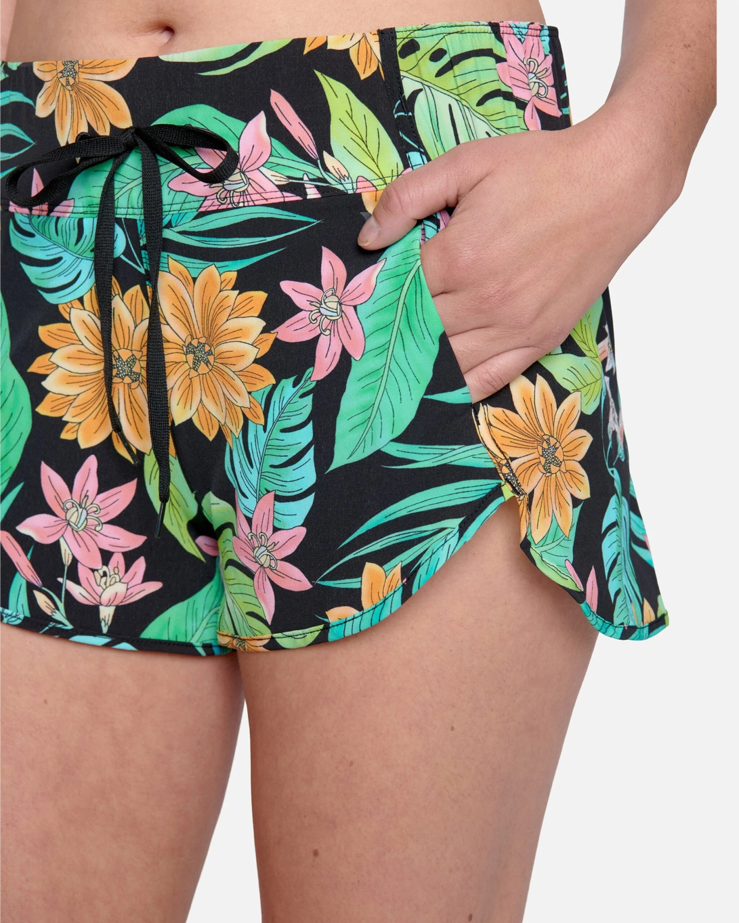 With a flattering fit and sporty silhouette, the BLOOM WASH AQUAS BOARDSHORT 2.5″ are at home in water and on land.