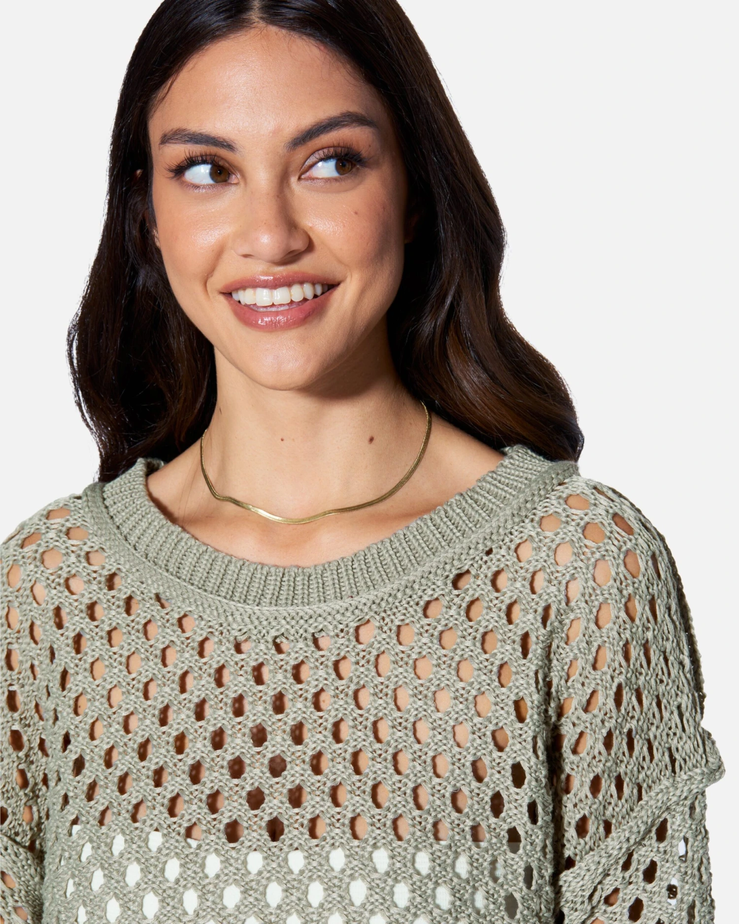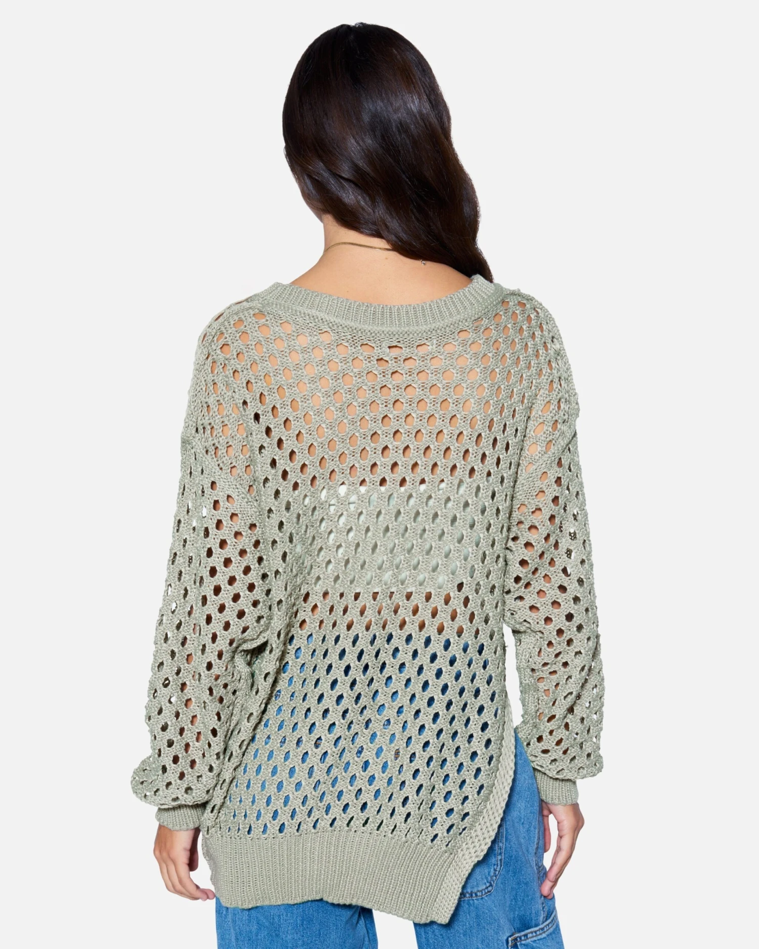 Hurley.com Exclusive. Boho babe but make it sweater weather, the ESSENTIAL KYLIE KNIT SWEATER is a fashion forward sweater with an asymmetrical hem and chunky open knit.