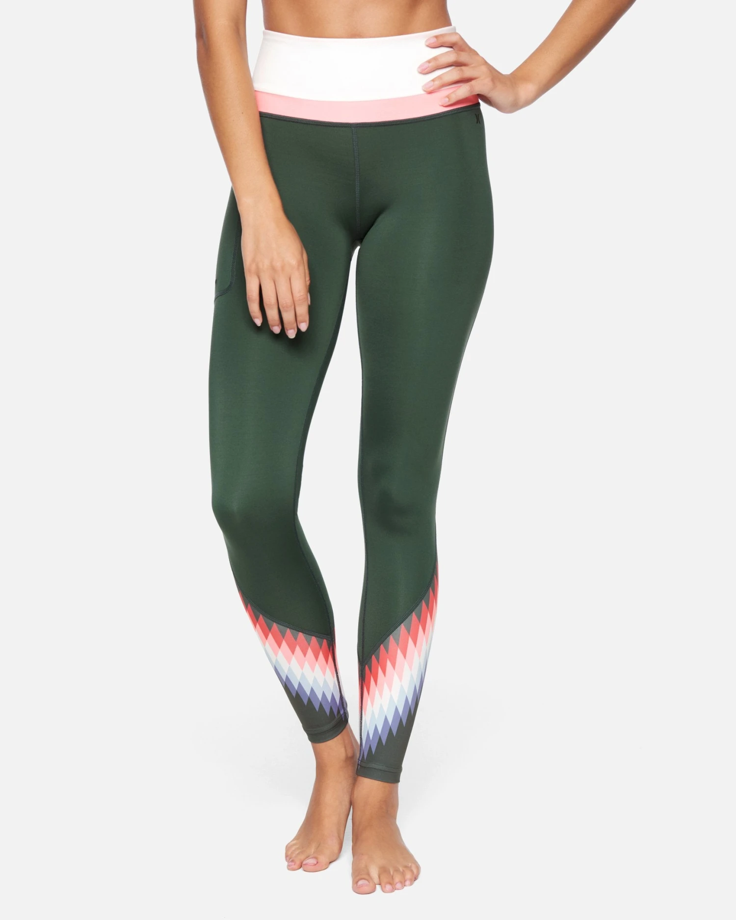 - Printed stretch waist full length tight with side phone pocket on wearers right and hidden interior waistband pocket.